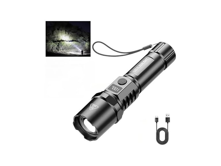 - 【Versatile Applications】: The kit includes: 1 * rechargeable flashlight and 1 * USB cable. This lightweight and practical LED flashlight high lumens is ideal for various purposes such as daily lighting, power outages, emergencies, and outdoor activities like dog walking, camping, hiking, fishing, and running.
