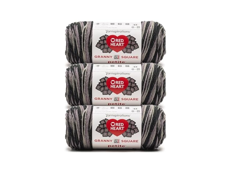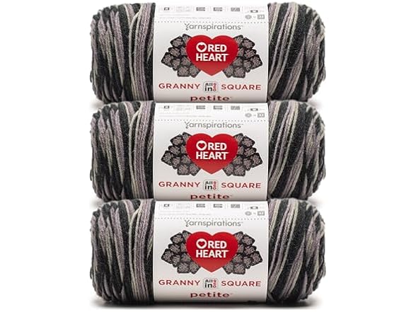 - (1) Red Heart All in One Granny Square Petite Darkside Yarn - 3 Pack of 250g/8.8oz - 100% Acrylic - #4 Worsted (Medium) - 440 Yards - Knitting/Crochet