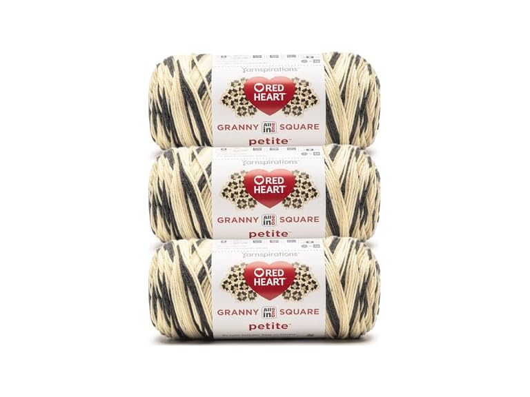 - (1) Red Heart All in One Granny Square Petite Linen Yarn - 3 Pack of 250g/8.8oz - 100% Acrylic - #4 Worsted (Medium) - 440 Yards - Knitting/Crochet