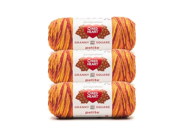 - (1) Red Heart All in One Granny Square Petite Pep Talk Yarn - 3 Pack of 250g/8.8oz - 100% Acrylic - #4 Worsted (Medium) - 440 Yards - Knitting/Crochet