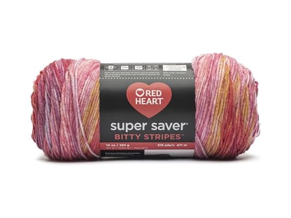 - Red Heart Super Saver Bitty Stripes takes self-striping yarn to the next level with a palette of eclectic colorways designed with a blurry-stripe effect to give projects an artisan look
