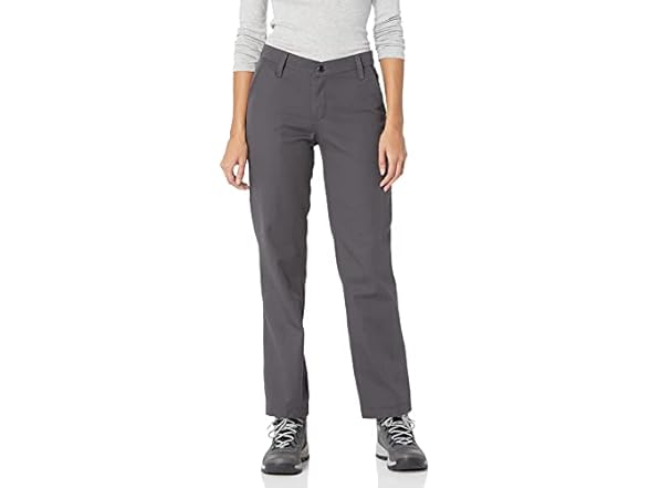 - Two slack-style front pockets, two set-in hip pockets, left pocket has button closure