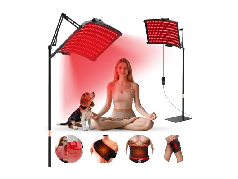 - 10-in-1 Versatile Design: Innovative IPX5 waterproof silicone panel with stand, desktop, and belt modes for flexible full-body light sessions. Use it on face, neck, shoulders, back, waist, knees, legs, arms, hands, or even pets.