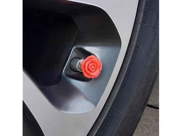 - Universal Fit Tire Valve Stem Caps Durable Plastic Material - Prevents Corrosion on the TPMS Valve Dynamic Shine Singular Unit to Prevent Breakage Rose Shaped Design 4 Piece Set Glimmering Rose: Shimmer Finish, with Reflective Blue Glitter Red JDM Car Accessories