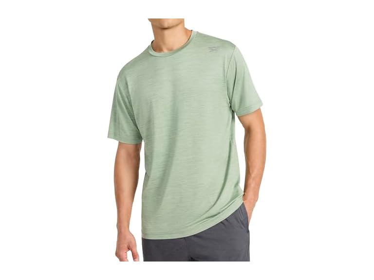Stay cool under pressure in the Reebok Men’s Vector Bolt Strike Short Sleeve Crewneck T-Shirt. Cut from breathable space dye Cool Touch jersey with just the right stretch, this tee flexes when you do without trapping heat. A reflective logo keeps it visible after hours while the single dye finish delivers tonal grit. A standard body length makes it ready for the daily grind and off-duty moves alike.