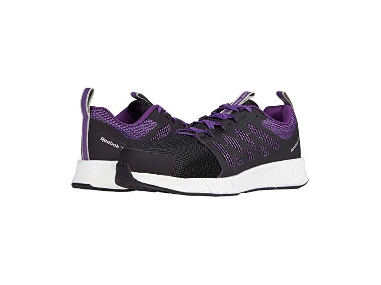 - MAXIMUM FLEXIBILITY AND SUPPORT: The Reebok Work Fusion Flexweave Cage Composite Toe work shoes are designed to provide superior flexibility with the innovative Floatride Foam technology. This cushioning in ladies shoes is significantly lighter than traditional EVA foam, ensuring a soft and lightweight experience for all-day comfort. The Ultraknit and Flexweave upper, featuring Flexweave Technology, integrates supportive fibers in a figure-8 design for durable and flexible support.