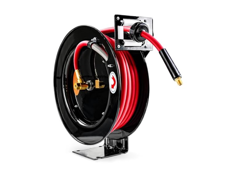 - UNIQUE FEATURES - Full flow solid swivel joint hose inlet connection protecting against leaks; includes an Adjustable Hose Stopper and 4 Non Snag Rollers, that assists to reduce hose abrasion; our Air Hose Reels are suitable for both air and water usage