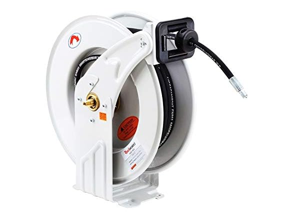 - SAFETY and PROPER USE - Our Reels are cull quality tested; ReelWorks Reels are best suited for indoor/outdoor use, night or day, DIY or industrial applications allowing for extension to be up out of the way keeping the home/workplace safe; Includes bolts fitting the 1/2” inch (12.7mm) holes to mount, (lead-in hose not included); Oil Hose Reels are suitable for Petroleum and Water based hydraulic fluids (NOT AIR)