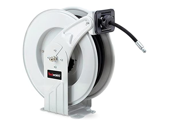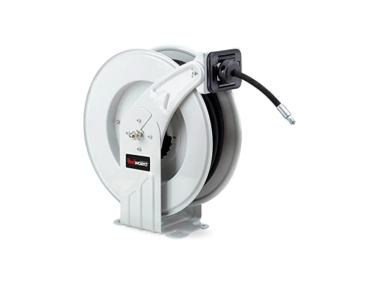- SAFETY and PROPER USE - Our Reels are cull quality tested. Reelworks Reels are best suited for indoor/outdoor use, night/day, DIY or industrial applications allowing for extension to be up out of the way keeping the home/workplace safe. Includes bolts fitting the 1/2” (12.7mm) holes to mount, (lead-in hose not included). Grease Hose Reels are suitable for Petroleum & Water based hydraulic fluids (NOT AIR or FUELS)