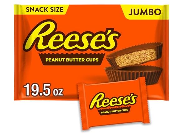 - (1) Reese's Reeses Milk Choc PB Cups Jumbo Bag 19.5oz