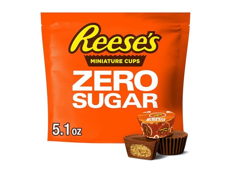 - Contains one (1) 5.1-ounce bag of REESE'S Zero Sugar Miniatures Chocolate Peanut Butter Cups Candy
