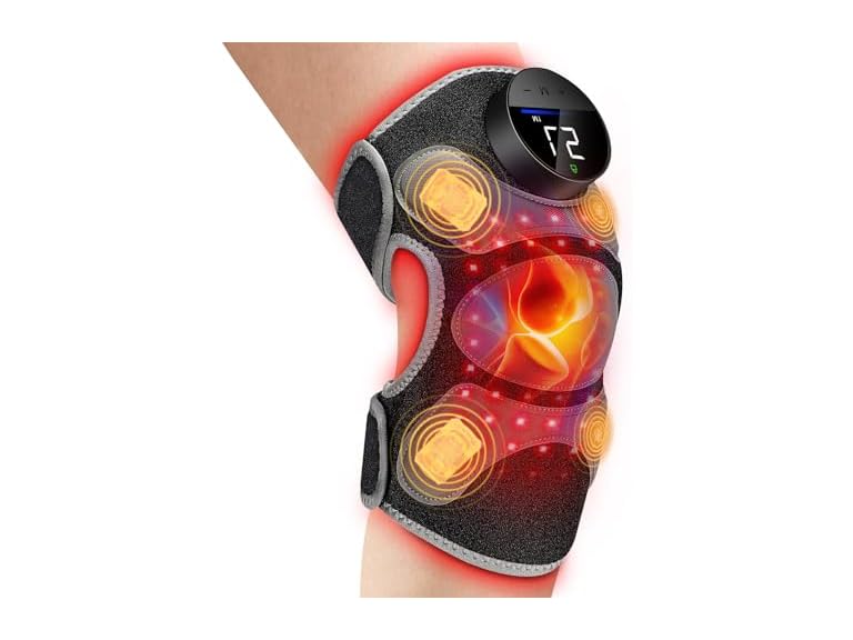 - šćInnovative Thermal Pulse Massageć Transform your recovery routine with our advanced knee massager, featuring a distinctive 3 levels vibration and 5 adjustable heat levels for profound tissue relaxation. It alleviates a range of knee pains, such as arthritis pain, sports injuries, and post-workout stiffness. ( Perceived heat intensity varies by individual.)