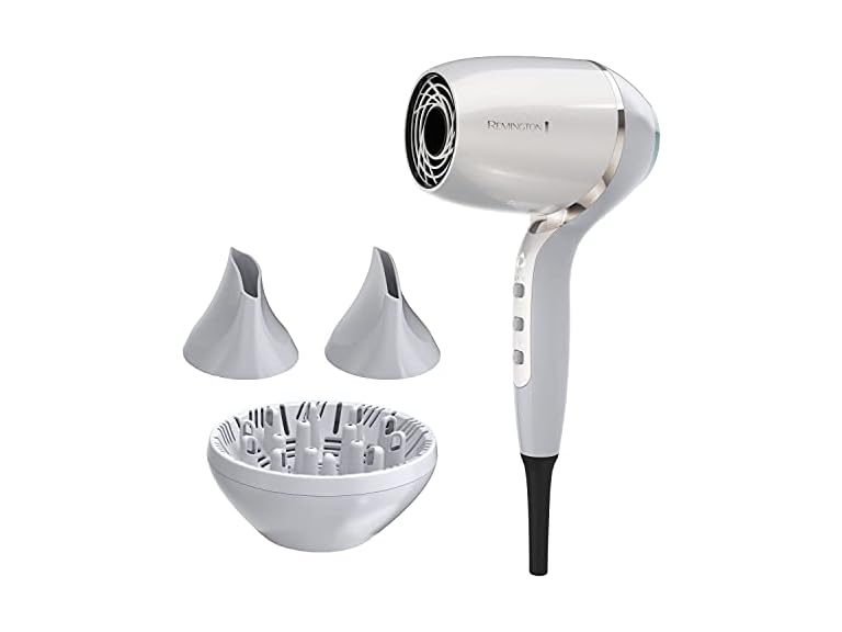 - Remington PROLUXE HydraCare Hair Dryer with Diffuser, Pearl White/Gray, 1875 Watts of Drying Power