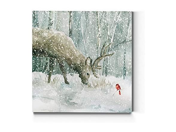 - (1) Renditions Gallery Reindeer and Cardinal Wall Art, Cute Christmas Artwork, Snowy Winter Forest, Scenic Nature, Premium Gallery Wrapped Canvas Decor, Ready to Hang, 24 in H x 24 in W, Made in America