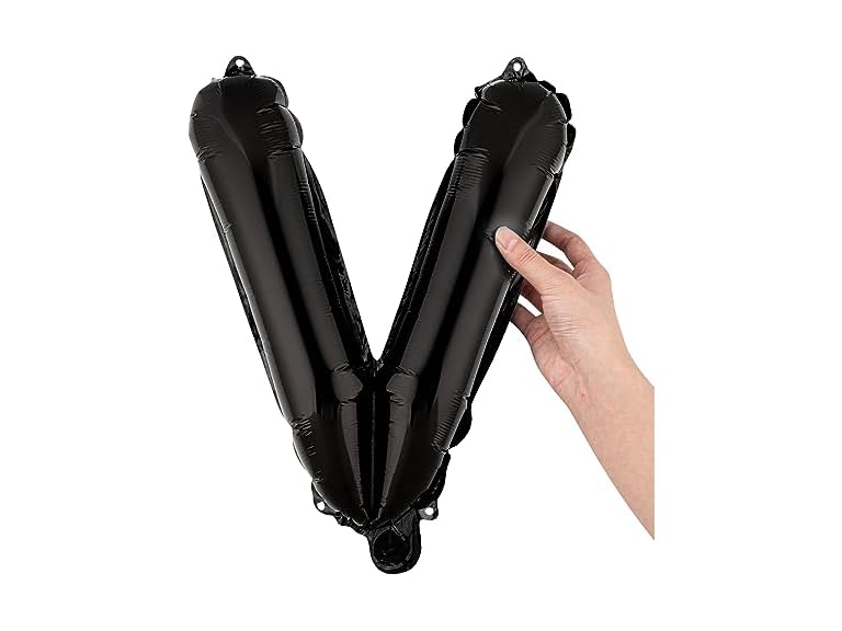 - (1) Restaurantware-Balloonify 16 Inch Letter Balloon, 1 Alphabet Party Balloon - Letter V, Self-Sealing, Black Foil Mylar Finish, Hanging Loop, Decoration For Birthday, Wedding, Or Graduation