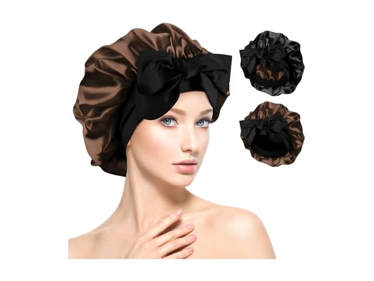 - Reversible Satin Bonnet for Sleeping Women, Double Layer Soft Ajustable Elasticity Band Satin Bonnet for Sleeping Hair Silk Sleep Cap Reduce Frizz (Coffee + Black)