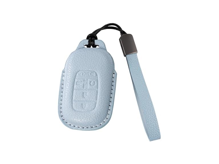 - Riasot Leather Key Fob Cover with Keychain for Honda Accord Civic HR-V CR-V Pilot 2022-up (Blue)