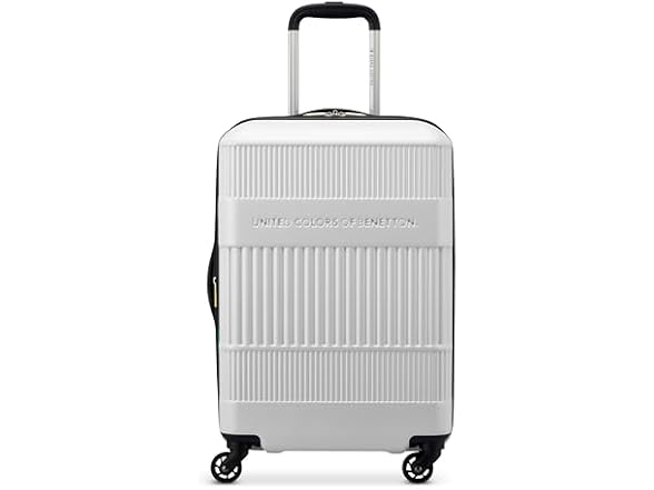 - United Colors of Benetton Ribbed Hardside Expandable Luggage with Spinner Wheels, White, Carry-On 20 Inch