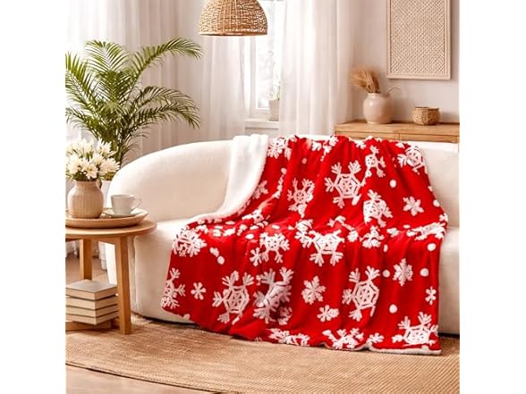 (1) RILIHO Red Sherpa Snowflakes Blanket