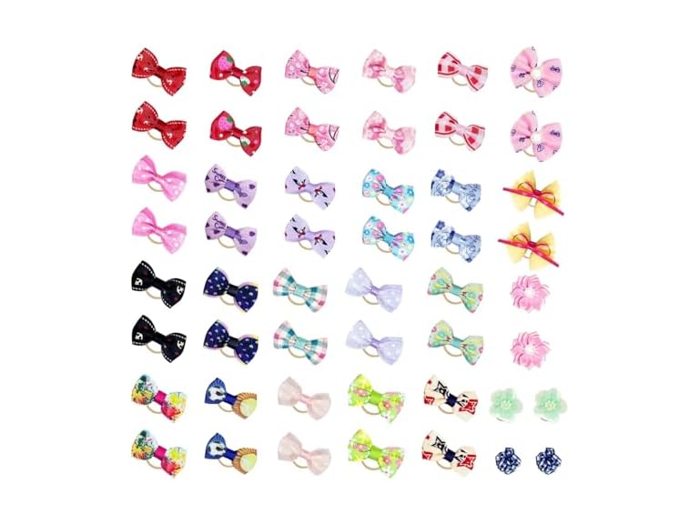 - (1) Rimobul 50PCS Yorkie Pet Hair Bows with Rubber Bands, Cute Small Dog Hair Bows Pet Handmade Hair Bowknot Puppy