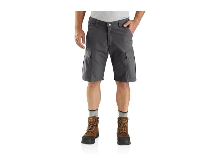 These men's lightweight Carhartt shorts give you easy movement on the job with durable stretch ripstop. They also wick sweat and fight odor as you work. The relaxed cut has a comfortable fit through the seat and thigh, and multiple cargo and utility pockets let you stash your tools. 7-ounce, 69% Cotton, 31% Polyester stretch ripstop. Built to move with Rugged Flex® stretch technology #Built with Force technology to wick sweat, dry fast, and fight odors. FastDry® technology keeps you cool for all day comfort. Relaxed Fit: Comfortable fit through the seat and thigh with more room to move #Strong sewn-on-seam belt loops. Comfortable gusseted crotch for more stretch between the legs. Reinforced front slash pockets. Cargo and utility pockets. Heavy-hauling reinforced back pockets. Inseam: 11"