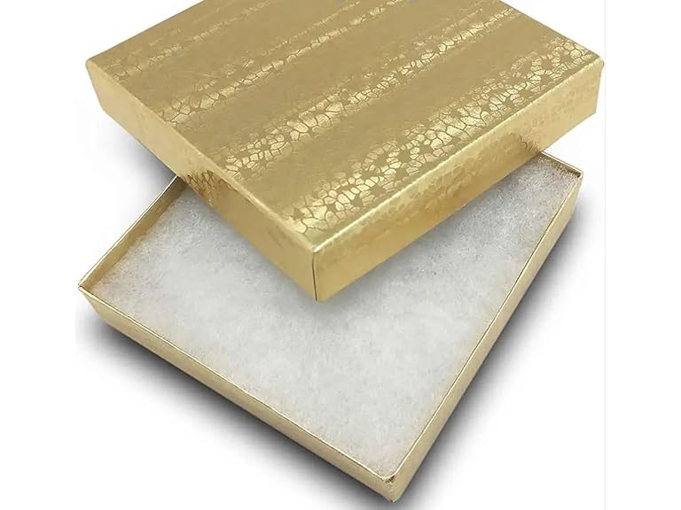 - Premium Quality Materials: Our RJ Displays Gold Foil Cotton Filled Cardboard Paper Jewelry Boxes are crafted using high-quality materials to ensure your precious jewelry remains safe and secure. The sturdy cardboard construction is designed to withstand everyday use while protecting your jewelry from scratches and damage