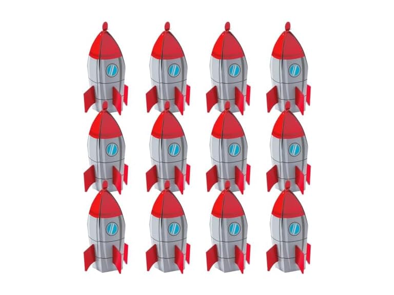 - Rocket Ship Space Party Favor Treat Boxes - 12 Piece Pack - Spaceship Birthday Party Supplies