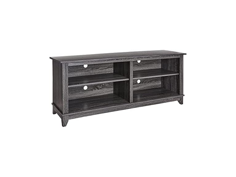 - (1) ROCKPOINT 58inch TV Stand Media Console for TV’s up to 65 Inches, Home Living Room Storage Console, Entertainment Center with 4 Open Storage Shelves, Modern TV Console Table (Charcoal)
