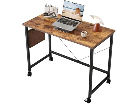 - 【Style Meets Affordability】Upgrade your space for less! The rustic wood-laminate finish mimics high-end furniture, while the portable desk on wheels costs a fraction. Perfect for students, remote workers, or as a chic kitchen island!