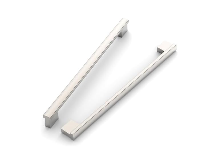- (1) ROMATEE 10 Pack 9 Inch(228mm) Cabinet Pull Brushed Satin Nickel Kitchen Cabinets Handles Nickel Cabinet Hardware for Cupboard Kitchen Pulls for Cabinets Drawer Handles