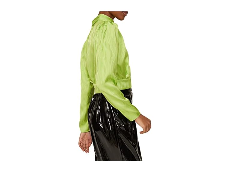 - Light up your work uniform with this bold green satin top by Ronny Kobo Collective.