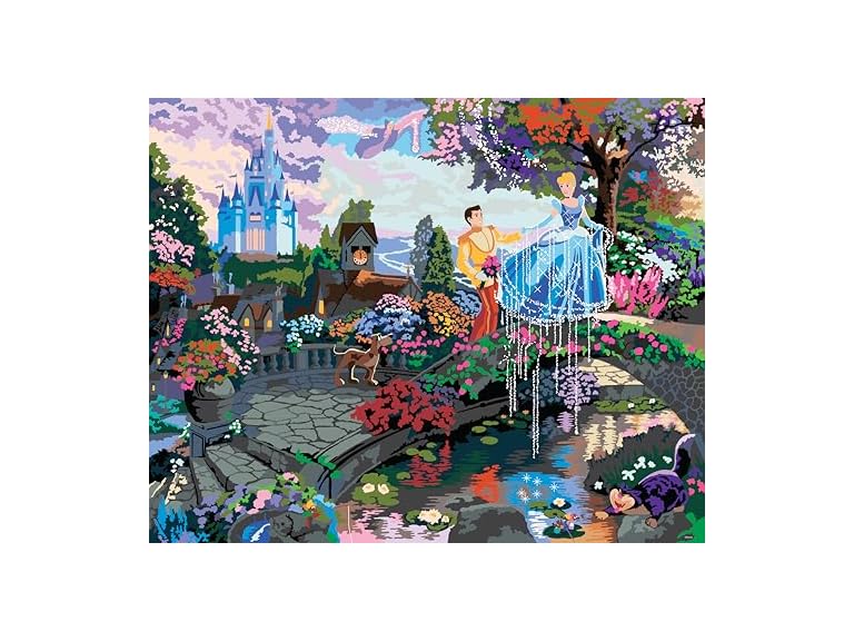 - Perfect for rainy days, family fun nights, or any time you crave a touch of creativity, this kit promises hours of engaging fun and a rewarding experience upon completion. Not only does it help enhance fine motor skills and focus, but it also offers a radiant display piece once completed. Celebrate birthdays, holidays, or surprise friends and family with a gift that mixes creativity with imagination. Imagine the delight in completing this detailed artwork and displaying it proudly. The RoseArt Disney Dreams Thomas Kinkade Deluxe Paint by Number Art - Cinderella Wishes Upon a Dream 20 x 16 Inch is perfect for ages 8 and up