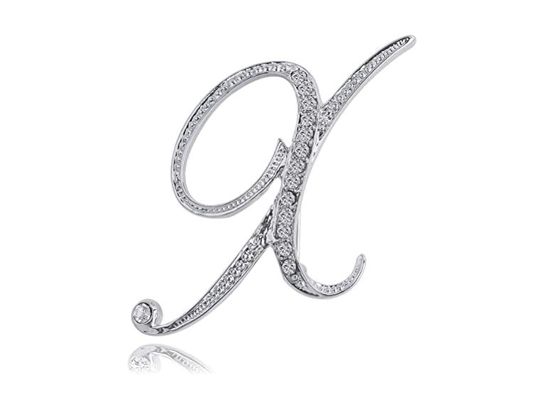 - (1) Rosette Hair Letter Brooch A-Z 26 Personalized Design Letters Initial Pins Clear Crystal Rhinestone Breastpin (X)