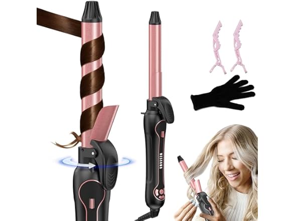 - Easy to Use: Light in weight, you can use our rotating curling iron 1 inch with just one hand. CLAMP, AUTO-ROTATE, RELEASE, In just 10 seconds, your hair will have beachy waves. With an LCD display on our 1 inch curling iron, you'll control temperature and speed settings, preventing overheating for healthier hair and bouncy curlings.