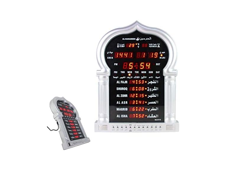 - 5 NAMAAZ LED DISPLAY - Displays Time For All 5 Namaaz And Temperature. (DC Plug & US Adapter Included)