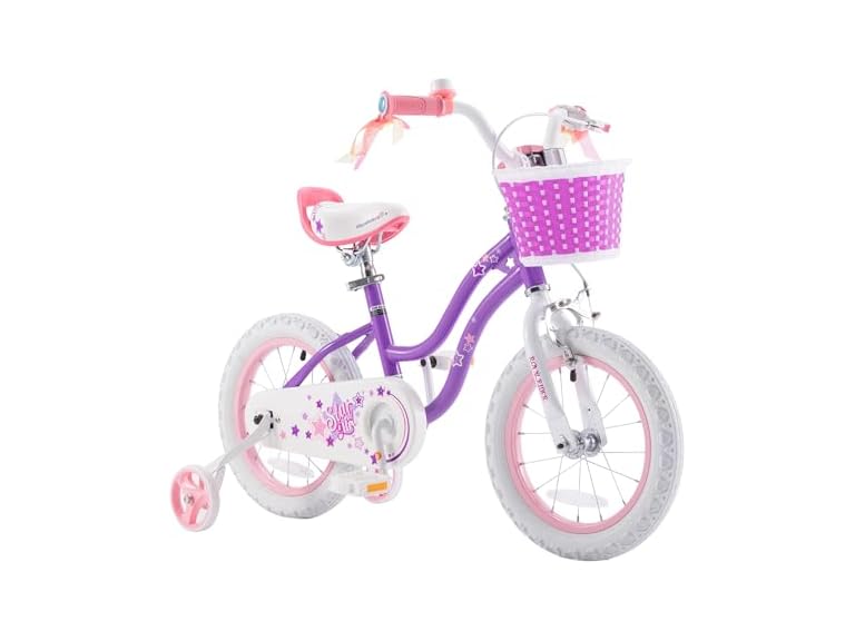 - (1) RoyalBaby Stargirl Kids Bike 14 Inch Girls Bicycle for Children with Training Wheels & Basket, Purple