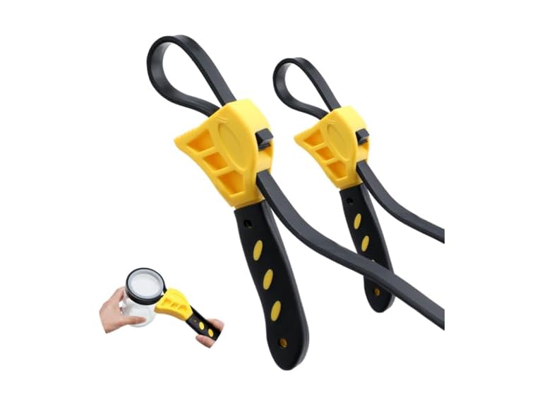- Versatile adjustable wrenches: a set of two wrenches with flexible straps of 4in and 6in to easily grip and turn oil filters, pipes, faucets, and jars