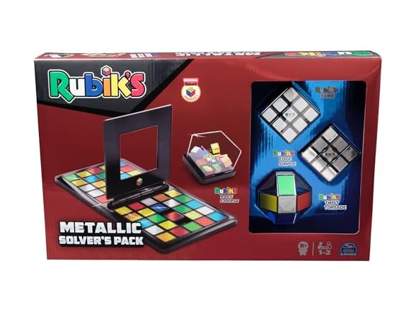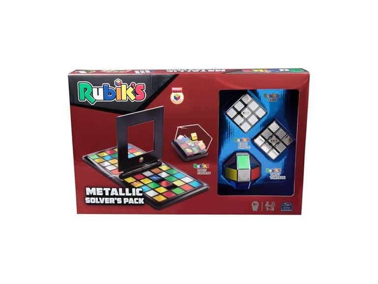 - Rubik’s Metallic Solver’s Pack, Rubik’s Cube Edge Twist Race Game in Metallic Finish 3D Puzzle Brain Teaser Retro Fidget Toy Board Game, Easter Basket Stuffer, for Ages 8 & Up