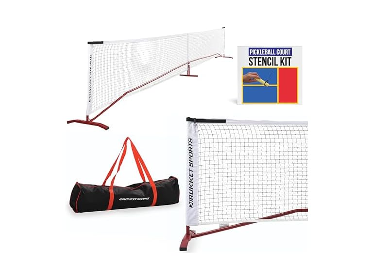 - Play Pickleball Anywhere: Regulation size pickleball net made specifically to give you an easy way to create a pickleball court at home or anywhere you can find the space. This set comes with (1) Rukket Regulation 22' Pickleball Net, (1) Court Creator Pickleball Lines Marking System with Template and Chalk, and (1) Carry Bag
