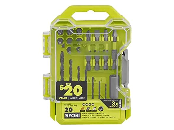 - (1) RYOBI Drill and Impact Drive Kit (20-Piece)