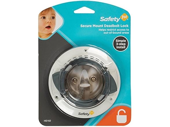 Secure Mount Deadbolt Lock helps keep your child safely inside. This easy-to-install lock requires no drilling or adhesives and leaves your door with no marring after removal. The simple installation takes just 3-steps, making it easy for parents to prevent children from opening doors with deadbolt locks. Installs behind the existing deadbolt hardware. Non-marring design is easily removed when no longer needed. Dual-action system is intuitive for parents, not for children. Quick glance at clear panel confirms door is locked. High impact plastic construction for a long lasting, durable product. - Fits deadbolts less than 2-1/6" wide that protrude less than 1" from the door - Keeps child from opening a deadbolt lock - No adhesives or drilling required - No permanent damage to the door - Fits most door locks (not all)
