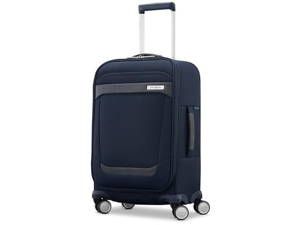 - (1) Samsonite Elevation Plus Carry-On Luggage - Airline Approved Softside Suitcase - 360 Spinner Wheels - Integrated ID Tag - Quick-Access Stash Pocket - Wet Pocket - AirTag™ Holder - Midnight Blue