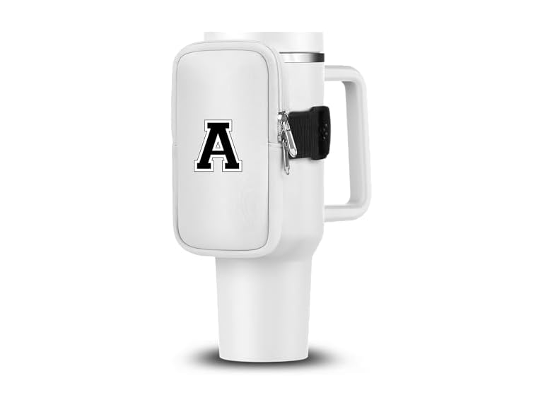- (1) SAMUSAI Initial Water Bottle Carrier Bag for Stanley-Tumbler pouch with Zipper Pocket Travel mug pouch- Personalized A-Z Phone Pocket for Stanley Cup Accessories - Detachable Large Phone Pocket