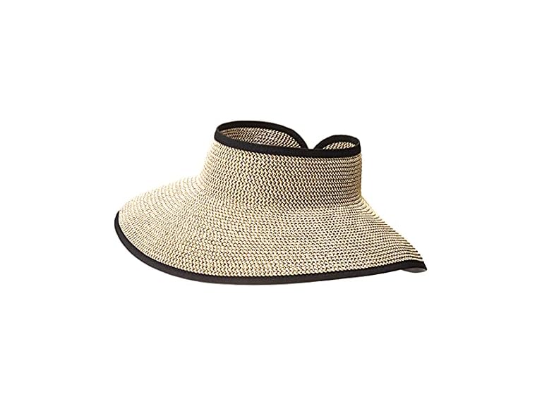A sun hat is a must-have for every sunny outing. San Diego Hat Company has got you covered - in style! This Women's Ultrabraid Large Brim Visor Summer Hat comes with ribbon binding, a ribbon sweatband and a convenient hook and loop closure at the back. You do not have to worry about getting sunburnt with the Ultrabraid Large Brim Visor. Made of 25% polyester and 75% paper, this sun hat fits comfortably on your head and provides ultimate sun protection. Easily roll the visor hat up and tuck it away in your purse or luggage! This sun hat for women offers the perfect sun protection on a sunny day! These chic beach hats come in multiple color options. Choose your favorite or buy them all to fit your perfect look!
