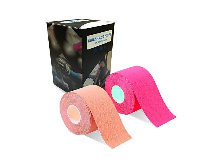 - (1) Sanfire Kinesiology Tape 2 Rolls Combo Pack for Athletic Sports, Recovery and Physiotherapy, Waterproof, Uncut, 2-Inch x 16.4-Feet