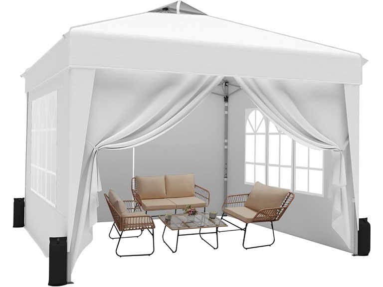 - (1) SANWAY 10x10 Pop Up Canopy Tent with Sidewalls x 4 – Easy Setup Canopy Tent, Waterproof, UV-Resistant, Portable with Carry Bag for Outdoor Events, Camping, and Backyard Parties- your choice of color