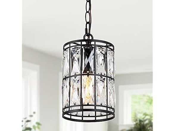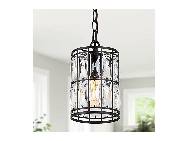 - Savonnerie Black Pendant Lighting for Kitchen Island, 1-Light Mini Crystal Chandeliers for Dining Room, Entryway, Adjustable Chain, 5.5” Dia