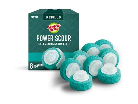 - (1) Scotch-Brite™ Power Scour Toilet Bowl Scrubbing Pad Refills, 8 Refill Disposable Toilet Bowl Cleaner Scrubbing Pads