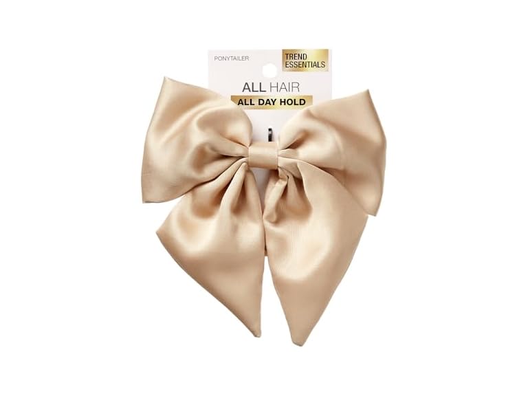 - BOW PONYTAILER: Secure a ponytail or bun with this champagne-colored bow hair tie, perfectly pre-tied for effortless style.
