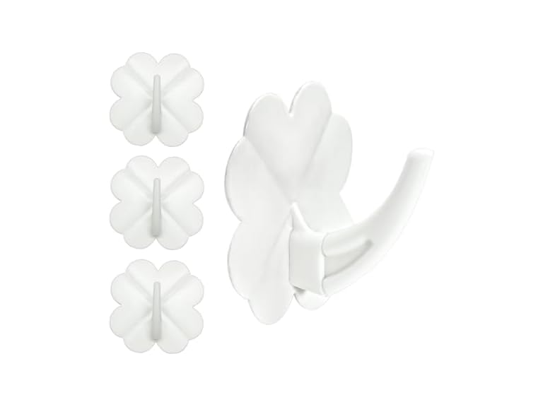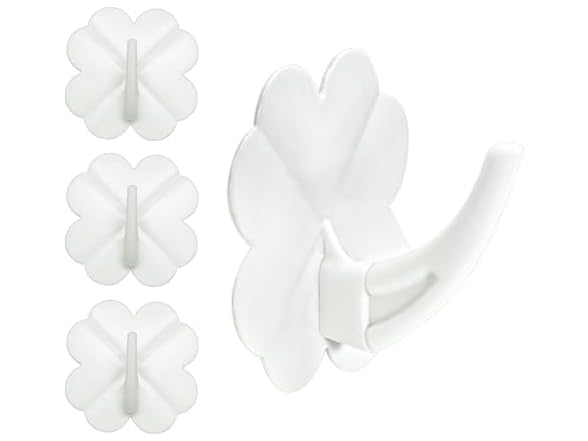 - 【Appearance beautiful no tools installation】. Unique four-leaf lucky grass fashion modeling design, light luxury the body, hooks with unique elongated design, rounded and smooth, easy to hang kinds of items, does not hurt clothes. No need for complicated nails and holes to install, just tear off the back of the adhesive protective layer, paste and press on the wall, glass or door, does not hurt the wall, easy to tear off, no residue damage to the surface, can be used again after replacing the adhesive layer.